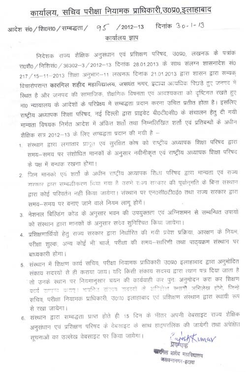 Approval Letter of B.Ed. Staff